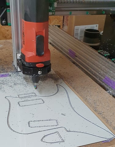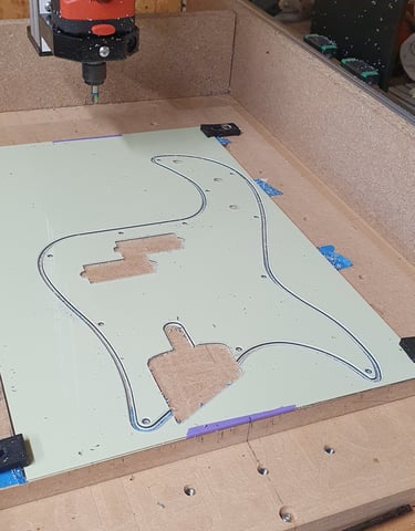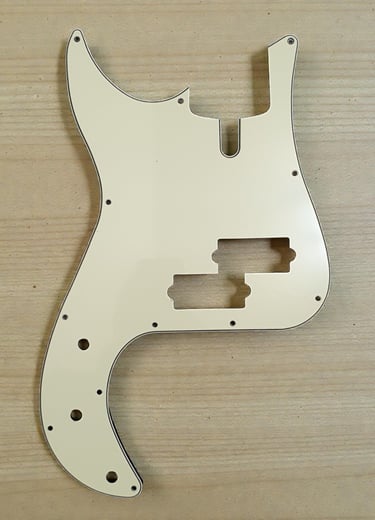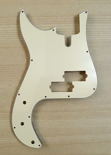 Nous savons tous que les standards ne sont sont pas courants dans le domaine du pickguard. Je vous propose, à partir de votre pickguard ou un tracé, de fabriquer votre nouveau pickguard avec les bonnes cotes. Grâce à cette méthode nous avons un pickguard parfaitement ajusté à votre instrument.